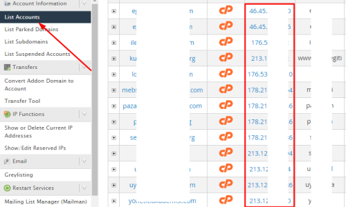 SEO Reseller paketleri üzerindeki sitelerinize atanan A Class ya da C Class Ip leri görmek için Resellere giriş yaparak sol menüden LİST ACCOUNT ...